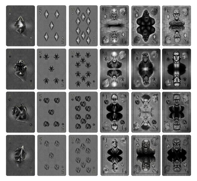 Le premier jeu jamais créé de Classics Playing Cards présente les monstres originaux. Chaque carte donne un look nostalgique sur les pères fondateurs des Monstres. Imprimé par USPCC, ces monstres ne peuvent pas attendre pour faire un come-back dans votre collection.