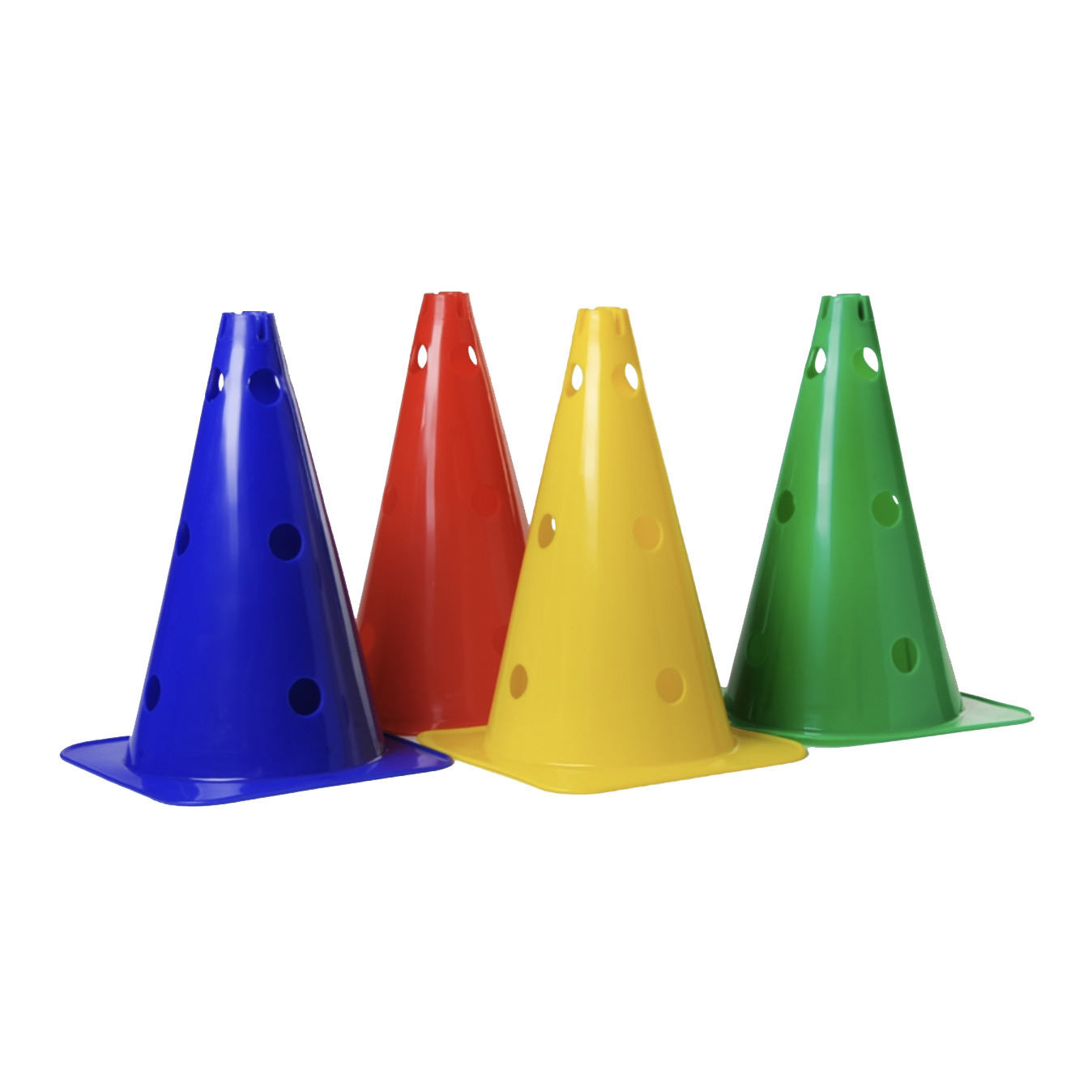 Cône PVC, percé, base carrée, résistant qui peut être utilisé avec des cerceaux plats ou des jalons.