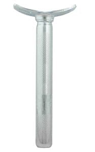 Une tige de selle en acier, disponible dans plusieurs longueurs, et de couleur noir ou chrome.